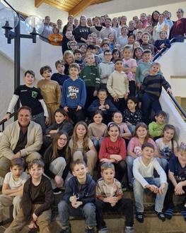 Am Freitag, dem 20. Februar war es dann soweit. Gemeinsam haben sich 53 Kommunionkinder aus den o.g. Orten mit samt ihren 21 Katechetinnen, sowie drei Vätern, drei Geschwisterkindern und Günter Gauer, der das Wochenende leitete, nach Vallendar aufgemacht. Ziel war das Jugendzentrum Marienberg, wo sich alle intensiv mit der heiligen Kommunion beschäftigten und vor allem Gemeinschaft erlebten. Über drei Tage verteilt hat die Gruppe die verschiedenen Facetten einer Hl. Messe erfahren. So ging es u.a. um die Erinnerung an das letzte Abendmahl, um die Wandlung von Brot und Wein, um die Bedeutung und den Wert des Brotes und um das Dankesagen, wozu ein Gottesdienst immer einlädt. All dies wurde durch verschiedene Methoden den Kindern, wie auch den Erwachsenen, näher gebracht und wurde somit verstehbarer und geerdet. Neben dem Hören von Inhalten waren alle eingeladen u.a. Gebetswürfel oder auch Verwandlungsschmetterlinge zu basteln. Jede Kleingruppe backte ein Brot, das im Abschlussgottesdienst am Sonntag Vormittag miteinander in einer ganz besonderen Atmosphäre geteilt werden konnte. Hier wurde auch die Emmaus-Geschichte durch Unterstützung einzelner Eltern sehr anschaulich dargestellt. Es entwickelte sich auch ein besondere besinnliche Atmosphäre am Abend zuvor, als bei Kerzenschein und Kaminfeuer das Segenslied „Sei behütet…“ den Tag abschloss.