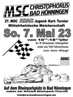 Am Sonntag, den 07. Mai, ist es wieder soweit. Im Rahmen des ADAC Mittelrhein findet das 27. Jugend-Kart-Slalom Turnier des Motorsportclub Bad Hönningen statt.