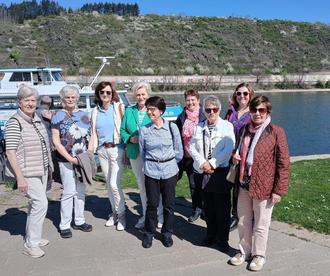 Anfang April hatte die kfd Leutesdorf ihre Mitglieder zu einer Frühlingsfahrt nach Andernach eingeladen. 10 Teilnehmerinnen trafen sich am Fähranleger in Leutesdorf, um bei schönstem Frühlingswetter nach Andernach zu fahren. Ein Teil der Gruppe erkundete Andernach mit einem Spaziergang unter anderem durch den Kräutergarten und Skulpturengarten am Einstein Hotel.
