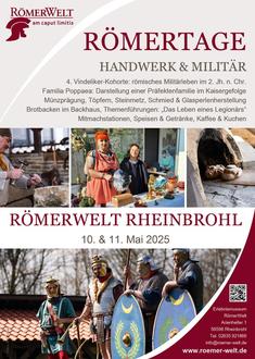 Am zweiten Wochenende im Mai finden die diesjährigen RömerTage in der RömerWelt Rheinbrohl statt. Im Außengelände des Erlebnismuseums zeigt die 4. Vindeliker-Kohorte das römische Militärleben der am Limes stationierten Auxiliarsoldaten im 2. Jahrhundert nach Christus. In Ihrem voll ausgestatten Lager gibt die Kohorte den Besuchern Einblick und Informationen zu den vielen Fragen rund um das Leben eines Auxiliarsoldaten und klärt die Fragen „Was ist ein Auxiliar?“ und „Warum ging man zum Militär?“ Sie zeigt welche Ausrüstung ein Auxiliar im Vergleich zu einem Legionär trug und wie ein normaler Arbeitstag bei den Hilfstruppen aussah.