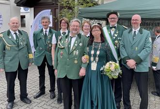 Unser aktuelles Königspaar Frank Breidbach und Königin Gabi Breidbach-Chalupka mit Begleitung beim Bundesköniginfest am 23. April in Waldbreitbach.