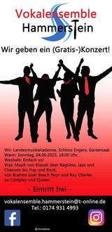 Am Sonntag, 4. Juni 2023, gibt das Vokalensemble Hammerstein um 18:00 Uhr in der Landesmusikakademie in Engers im Gartensaal ein Gratis-Konzert.