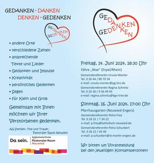 Auch in diesem Sommer lädt die AG Sterben, Tod und Trauer des Pastoralen Raumes Neuwied zu besonderen Gedenkfeiern für Verstorbene ein.