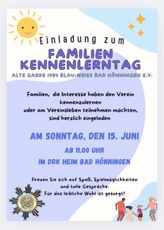Familien, die Interesse haben, den Verein näher kennenzulernen oder einen Blick in das Vereinsleben werfen möchten, sind herzlich eingeladen. Für das leibliche Wohl ist gesorgt.