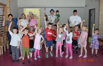 Nicht nur die Kinder, sondern auch die Erzieherinnen waren voller Begeisterung dabei und ließen sich von der mitreißenden Art von Daniel Dorfkind anstecken. Als Dankeschön bekam jedes Kind eine Rassel geschenkt.