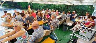 Kurz nach Fahrtbeginn erhielt jeder im Bus ein Programmheft in dem die vier kommenden Tage als Reiseübersicht beschrieben waren. On top war die Broschüre auch ein Wissenslexikon und ein kleines Meisterwerk, denn von A wie Alsterwasser bis Z wie Zwischenstopp war hier so einiges kurz und knapp zusammengefasst. Mit diesem Rüstzeug war man in der Lage, sich jederzeit über das Wichtigste zu informieren. Und das war auch gut so, denn Pascal Berger und Udo Schneider, 1. und 2. Vereinsvorsitzender des Vereins, hatten bereits drei Jahre zuvor für diese Tour Ausflüge und Programmangebote gebucht und die gemischte Gruppe im Alter von 12 bis 84 Jahre konnten an allem teilnehmen, worauf sie Lust hatten. Während dieser erlebnisreichen Tage sah man frohe Gesichter, hörte herzhaftes Lachen und ganz unterschiedliche Konstellationen aus aktiven und passiven, jungen und junggebliebenen fanden sich mal beim Essen, mal zu den Rahmenprogrammen und beim Ausklang des Abends zusammen, wo manche die Nacht zum Tag werden ließen. Besonders schön war es für eine Musikerin, die mit der ganzen Truppe in ihren 17. Geburtstag hineinfeiern konnte, zusammen mit einem passiven Mitglied, der seinen 81. Geburtstag am gleichen Tag hatte.