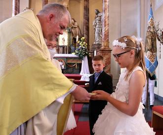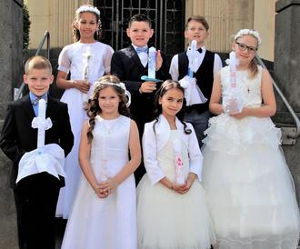 Während die erste Kommunion in Bad Hönningen, von hochsommerlichem Sonnenschein geprägt war, spendete Petrus bei der 2. Kommunion ein erträglicheres Klima und die Kinder hatten sich in den vergangenen Wochen in den Unterrichtsgruppen auf diesen großen Tag vorbereitet. Hierbei wurden sie von den Eltern und dem Pastor begleitet. Im feierlichen Gottesdienst stand die erste Begegnung der Kinder mit Jesus in dem Zeichen von Brot und Wein im Mittelpunkt. Das Lied „Laudato si“ und „Wenn einer sagt ich mag dich DU“ wurde klatschend, von den Kindern und auch von den Gästen, begleitet. Das Zeremoniell war in sich stimmig und trotz des spirituellen Hintergrunds, hatte die Geistlichkeit darauf geachtet, dass die Kommunion kindgerecht verpackt war und den Hauptakteuren so richtig Spaß machte. Dies wurde nicht nur von den Eltern, sondern auch von den Gästen freudig aufgenommen. „Das ist heute euer Tag, heute werdet ihr eurem „Schatz“ Jesus begegnen,“ so Pastor Christian Scheinost, der auch zum Abschluss der Messe an jedes Kind eine bunte Rose überreichte. Eine Vertreterin des Pfarrgemeinderates, hieß die Kinder in der Kirchengemeinde herzlich willkommen, denn in der Kirchengemeinde sind die Kinder nun Erwachsene. Gleichzeitig lud sie ein wieder zu kommen, um eventuell als Messdiener mitzumachen. Mit „Großer Gott wir loben dich“, an der Orgel Andreas Wies, unterstützt von einigen herrlichen Stimmen vom Kirchenchor, zogen die Kommunionkinder unter festlichem Glockenklang einem schönen Tag mit der Familie, entgegen.