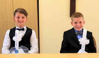 Sebastian Höhl und Maximilian Ockenfels warteten mit den anderen Kindern im Pfarrhaus auf die Kommunionfeier