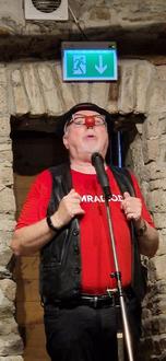 Zu Beginn seines Programms zog der „Bergische Jung“ Willibert Pauels mit einem Lied für einen Heiden, „dat is der - Achtung Kalauer - Heide Witzka!“ In den kleinen 45 Personen fassenden Veranstaltungskeller ein.