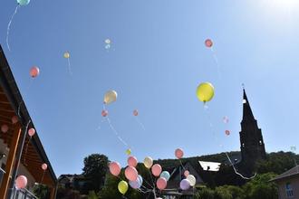 Als die Erzieher*innen und KiTa Kinder ihre Wünsche für die Zukunft als Metapher an die steigenden Luftballons knoteten, waren nicht nur die Augen der Eltern für einen kurzen Moment mit Tränen gefüllt.