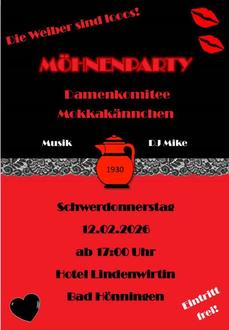 Das Damenkomitee Mokkakännchen lädt herzlich alle Karnevalsfreunde zur diesjährigen Möhnenparty ein. Diese Veranstaltung richtet sich ausdrücklich nicht nur an weibliche Gäste, sondern an alle, die Freude am Karneval haben und gemeinsam feiern möchten.