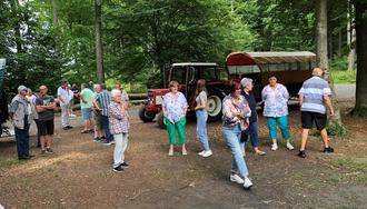 Um 14.30 Uhr bestieg dann die Nachbarschaft die zwei bestellten Planwagen. Es ging über den Neuen Weg hinauf, vorbei an der Brombeerschenke, durch den Wald bis zur Christianshütte. Dort gab es für alle eine Pause.