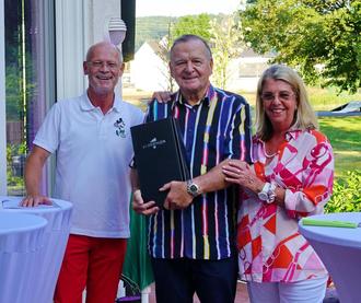 Dr. Klaus Grunwald (Mitte) wurde vom 1. Vorsitzenden Guido Probst für 60 Jahre Mitgliedschaft geehrt. Melanie Kremer-Probst (Sommerfest-Orga-Team) gratulierte ebenfalls ganz herzlich.
