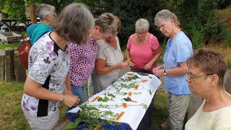 Vom Frühling bis zum Herbst ist der Tisch der Natur reich gedeckt. So auch am 15. Juli, als sich 13 kfd -Frauen mit der Kräuterpädagogin Katja Vogel zu einer Kräuterwanderung zusammenfanden. Frau Vogel machte die Frauen aufmerksam auf viele Pflanzen, denen kaum Beachtung geschenkt wird oder die im eigenen Garten als Ärgernis gesehen werden.