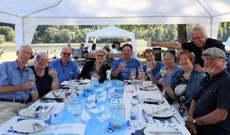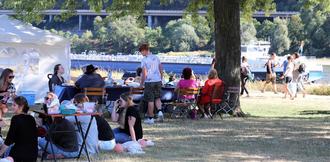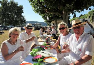 Die lange Tafel war bis auf den letzten Platz besetzt und auf der Picknickwiese entstanden regelrechte Zelt- und Relaxoasen, wo der Familiennachwuchs vor der Sonne wohl geschützt den Eltern beim Weingenießen zuschauen konnte. Und wem kein Platz an der Tafel beschieden war, der rollte einfach seine Decke auf der Rheinwiese aus, öffnete die Kühltasche und förderte seine mitgebrachten kulinarischen Köstlichkeiten zutage und stieß mit einem edlen Tröpfchen, welches von den Winzern gereicht wurde, auf den gelungenen Event mit seiner Familie, Nachbarn oder den Freunden an.