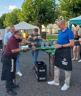 Die Laurentiuskirmes startete freitags mit dem Fassanstich durch Ortsbürgermeister Markus Konitzer (2.v.l.), der von Verbandsbürgermeister Jan Ermtraut (rechts) unterstützt wurde. Zuvor hatte der erste Vorsitzende des KJV, Lukas Mertesacker (links), die Gäste begrüßt. Anschließend spielte „MusikMoment“ und sorgte für beste Stimmung unter den Kirmesbesuchern. Nicht nur die gute Musik auch der liebevoll errichte und geschmückte Kirmesplatz sowie das Bewirtungsangebot trugen dazu bei, dass die Anwesenden fröhlich diesen Dorfabend mit dem KJV feierten.