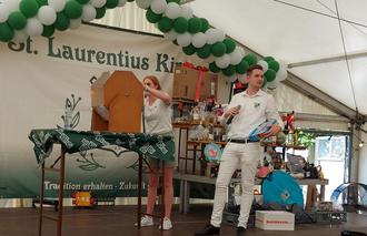 Nach dem tollen Start an Kirmesfreitag folgten zwei ebenso schöne Tage der Laurentiuskirmes in Leutesdorf: Der Samstagabend war eine stimmungsvolle Party mit der Band Musik Momente und Happy Hour in der im Kirmeszelt integrierten Sektbar. Die Gäste tanzten und feierten ausgelassen an diesem schönen Sommerabend. Der Sonntag begann mit einem Festgottesdienst. Anschließend ging es wieder ins Kirmeszelt am Rhein, wo beim traditionellen Frühschoppen einige Gruppen etliche „Türmchen knobelten“. In diesem Jahr sorgte der Musikverein Blau-Weiß Leutesdorf für die musikalische Unterhaltung. Nachmittags wurde das Bewirtungsangebot um Kaffee & selbstgebackene Kuchen und später auch um hausgemachte Döppekoche erweitert sowie eine Kinderbelustigung für die kleinsten Kirmesgäste angeboten. Bald stieg die Spannung der Besucher, als die umfangreichen Preise der Tombola verlost wurden. Die 3 Hauptpreise wurden an anwesende Kirmesgäste ausgelost; die anderen Preise, deren Gewinner nicht anwesend waren, werden in Kürze bei der Metzgerei Schumacher zur Abholung bereitgestellt und die Gewinnnummern veröffentlicht.