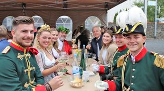 Die Erpeler Weinkönigin Hannah war mit Weinprinzessin Lea, Bacchus Andreas und den Offizieren des Junggesellenvereins sowie den Freunden des Erpeler Weinfestes angereist