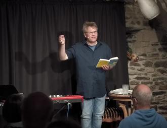 Schallendes Gelächter und anhaltender Applaus machte sich auch bei diesem Programmpunkt breit: Matthias Reuter begann den zweiten Teil des Abends mit seinen satirisch-überspitzt geschilderten Erlebnissen rund um einen Besuch in Rüdesheim, nebst Rheinliedern in Endlosschleife, Weingeist-beseelten Rheintouristen und einer missglückten Übernachtung im Faß: Da konnte das Bad Hönninger Publikum sich – auch mit Blick auf die eigene Ortsgeschichte - vor Lachen kaum noch halten. Am Ende waren sich alle einig: Ruhrpott-geprägter Humor zieht auch im Rheinland, und dieser Abend mit Matthias Reuter macht Lust auf ein Wiedersehen im Unter-Haus des Hohen Hauses!