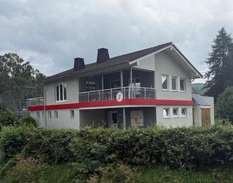 Die Giebel wurden zusätzlich mit Winkelprofilen verkleidet, und das Gelände leuchtet in den Vereinsfarben Rot-Weiß. Ein besonderes Highlight ist die neue Markise, die installiert wurde und den Mitgliedern künftig einen geschützten Bereich zum Verweilen bietet.