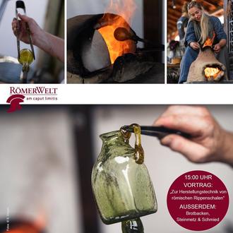 Am letzten Sonntag im September wird es in der Römischen Glashütte heiß hergehen. Wenn der Ofen die nötige Temperatur hat, können die Besucher des Erlebnismuseums die unterschiedliche Fertigung von Glasprodukten und Gefäßen bestaunen. Die manuelle Glasfertigung gehört seit Ende 2023 zum immateriellen Weltkulturerbe und ergänzt mit dieser Art der experimentellen Archäologie das Angebot der RömerWelt am Welterbe Limes auf anschauliche Weise. Neben dem großen Glasofen werden auch ein oder zwei Perlenöfen zeigen, wie filigran die Arbeit mit dem "heißen" Werkstoff sein kann.