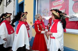 Ilke und Dirk Müller überraschten kürzlich die amtierende Prinzessin Diana I. nebst ihrem Team mit einem Highlight der besonderen Güte. Zu Ehren der Bad Hönninger Regentin hatte das Ehepaar mit vereinten Kräften, die Fenster in ihrem Haus bunt geschmückt mit Hinweisen zu den anstehenden Veranstaltungen. Hierbei prangte schon von weitem das „Kaffeekännchen“ des Damenkomitees „Mokkakännchen“, aus deren Reihen Prinzessin Diana I. entstammt, für jeden sichtbar entgegen. Ebenso wie der Slogan „Mir sin Prinzessin“ und „Hünnije Alaaf heißt: Mir sin eins“. Die jecke Tollität und ihr Team zeigten sich angenehm überrascht und dankten dem engagierten Ehepaar mit einem laut vernehmlichen „Dreimol Hünnije Alaaf!“