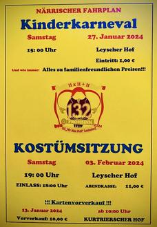 Die Kostümsitzung der KG startet am 03.02.2024 ab 19.00 Uhr ebenfalls im Leyscher Hof.