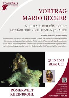 Im traditionellen Herbstvortrag am Freitag, 31. Oktober mit Mario Becker (EOS Reisen) werden bildreich und spannend 15 Neuentdeckungen der römischen Archäologie präsentiert und diskutiert, ihre Bedeutung für die Wissenschaft hervorgehoben und die eine oder andere Frage dazu beantwortet.