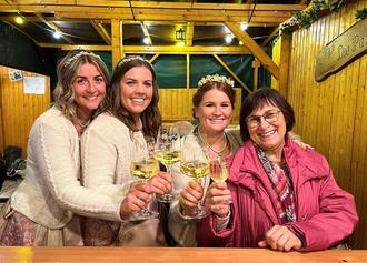 Ein fröhliches Prosit mit der Betreuerin Carla Wilkes (re)