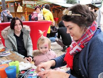 Die keine Lotta zeigte sich mutig und ließ sich von der Weinkönigin Jill anmalen