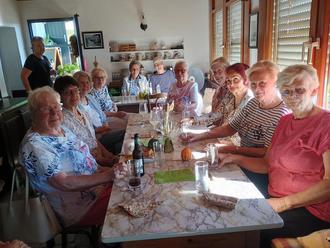 Mitte September hatte die kfd Leutesdorf ihre Mitglieder zu einem Ausflug zur Leutesdorfer Edmundhütte eingeladen, wozu sich 12 Frauen angemeldet hatten. Ein kleiner Teil wanderte trotz großer Hitze zur Hütte, während die anderen Frauen den angebotenen Fahrdienst nutzten. Aufgrund der heißen Temperaturen hat sich die Mehrzahl dann auch für einen Tisch in der Hütte entschieden. Die Gruppe genoss das Angebot von Kaffee und Kuchen oder Zwiebelkuchen mit Federweißer oder alternativem Kaltgetränk. Und ebenso den tollen Blick auf Leutesdorf und Andernach. Ein sehr schöner Nachmittag in geselliger Runde!