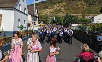 Ganz bemerkenswert war, dass die jungen Musiker*innen ihren Musikverein auch bei allen anderen anfallenden Arbeiten rund um das Winzerfest unterstützten. Der Verein ist mächtig stolz auf seine Jugend in den eigenen Reihen. Die nächste Generation der Blau-Weißen rückt so langsam nach und man legt den Grundstein für die Zukunft. Das bedeutet, bei künftigen Leutesdorfer Winzerfesten den „eigenen“ Weinstand mit erlesenen Tröpfchen vom Weingut Gotthard Emmerich zu betreiben, alle Umzüge instrumental zu begleiten und sonntags mit eigener Fußgruppe und Themenwagen beim Festumzug mitzugehen.