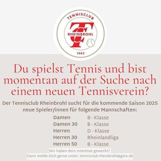 Nach der Saison ist vor der neuen Saison. Der TC Rheinbrohl sucht Dich!