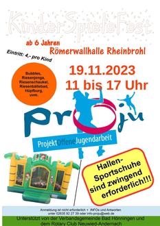 RHEINBROHL. Am 19. November 2023 findet in der Römerwallhalle in Rheinbrohl ein aufregendes Kinderspielefest für Kinder ab 6 Jahren statt! Dieses Ereignis verspricht jede Menge Action und Spaß für groß und klein.