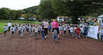 Bei dieser Aktion machten auch die Kitas „Casa Vivida“ und „Casa Feliz“ vom Kindergartenzweckverband der VG Bad Hönningen mit. Unter der Anleitung der Erzieherinnen wurde mit den künftigen Schulkindern schon im Vorfeld fleißig trainiert. Gemeinsam starteten sie die Aktion mit einer Zumba Einheit zum Aufwärmen; dann gingen die Läufer/innen an den Start. Die Kinder waren von Anfang an super motiviert und machten regelmäßig beim Training mit. Bewegung ist eben wichtig und jeder machte nach seinem Tempo mit. Manche wollten gar nicht mehr aufhören.