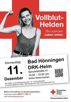 Wir laden euch herzlich zur letzten Blutspende für dieses Jahr in Bad Hönningen ein! Eure Spende kann Leben retten! Kommt vorbei und tut etwas Gutes! Jede Spende zählt – für Menschen, die dringend auf Blutkonserven angewiesen sind. Nach der Spende gibt es zur Stärkung Crêpes und Punsch (alkoholfrei) in den Räumen der AWO. Wir freuen uns auf euch!