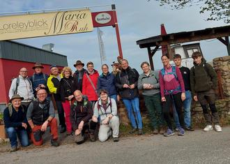 An einem herbstlichen Sonntag trafen sich 16 gutgelaunte Mitglieder der Naturfreunde Leutesdorf am Bahnhof, um nach St. Goar zu fahren. Hier angekommen starteten sie, mit einem Treppenanstieg, ihre Tour auf dem RheinBurgenWeg. Er führte sie über die Rheinhöhen, mit wunderbaren Ausblicken, in Richtung Oberwesel. Die erste Rast wurde in dem Ausflugslokal „Maria Ruh“ gemacht.