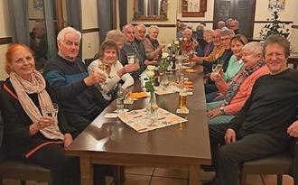 Am 31. Oktober trafen sich die Schuljahrgänge 1946/47 aus Leutesdorf zum Döppekooche-Essen im Leutesdorfer Hof. Es war ein fröhliches Wiedersehen und alle hatten viel Spaß! Küchen-Maître Alex war die rheinische Kartoffelspezialität ganz besonders gut gelungen und Service-Chefin Carina umsorgte die 15 I-Dötzchen von einst mit ihrem bezaubernden Fahrer Charme. Schließlich erreichte der ausgelassene Abend seinen Höhepunkt, als Musiker Herbert Moizisch zur Gitarre griff und seinen früheren Mitschülern Pop-Hits aus alten Zeiten vortrug.