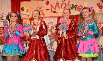 Kinderprinzessin Jolie I. und Romy I. mit ihren Zuckerpuppen Martha und Lara überbrachten Grüße aus der Badestadt