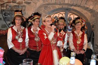 Zum traditionellen Karnevalsempfang im Gewölbekeller des Heimatmuseums „Hohen Haus“ konnte der Vorsitzende des Heimatvereins, Guido Job, eine illustre Schar von Gästen begrüßen. Darunter die närrischen Regenten der Badestadt Prinzessin Diana I. mit ihrem Team und die beiden Kinderprinzessinnen Jolie und Romy mit Gefolge. Mit dabei eine Abordnung der Bad Hönninger KG mit ihrem Vorsitzenden Thomas Gollos an der Spitze und eine Delegation des Damenkomitee Mokkakännchen. Obwohl sowohl die Vertreter der Ariendorfer KG als auch die der Alten Garde verhindert waren, war es im Gewölbekeller schön knubbelig voll und urgemütlich, während draußen vor der Tür der Winter Einzug hielt. Die Kinderprinzessinnen stellten bei einem „Hünnijer Platt - Quiz“ ihr Wissen fachkompetent unter Beweis. Karnevalisten und Heimatverein fühlen sich schließlich dem Brauchtum verpflichtet und dazu gehört natürlich auch die Muttersprache, das „Hünnijer Platt“. Auf diese Weise lernten die Anwesenden - soweit sie es nicht bereits wussten - dass zum Beispiel Purzelbäume Katzebumpele sind, ein Frack en Flütterock, der Bommel an der Mütze en Flümm, eine Jacke en Kammesol und dass Maikäfer Kebanse genannt werden. „So lautet zum Beispiel auch der hünnijer Karnevalistenruf ein dreifach donnerndes Hünnije Alaaf und das dreimol vun Hätze überlassen wir Hünnijer am besten großzügig dem kölsche Sprachraum, denn „do jehürt et hin“. Gut so, denn wie sagt der Hünnijer?: „Alles annere wör jo och Keu,“so der Vorsitzende augenzwinkernd. Die Dialektgrenze entsprach übrigens stets überwiegend der Grenze von Kurtrier zu Kurköln. Das war früher der Kasbach, später war die Sprachgrenze der Ariendorfer Bach. So wird zum Beispiel in Hünnije noch jeschwätzt und am Rhein jewonnt und schon in Leubsdorf schwaden die Leute und wohnen am Rhing. Zu den heimatlichen Besonderheiten gehört natürlich auch das vielerorts verbreitete „Was sich liebt das neckt sich“ zwischen den Nachbarorten. Dass die Hünnijer von den Rheinbrohler Nachbarn Bunne oder Feldbunne genannt werden, nahm der Traditionsstammtisch „Bunnegröön“ zum Anlass hierüber ein eigenes Lied, das „Bohnenlied“ zu machen. Deren Vertreter Günther Thiermann, Jürgen Dröge und Guido Job sowie Prinzessin Diana als häufiger Stammtischgast oft sangen, und es auch jetzt voller Inbrunst mit sämtlichen Anwesenden im Kellergewölbe anstimmten. Natürlich ließen es sich auch die Tollitäten nicht nehmen ihre stimmungsvollen Sessionslieder zu präsentieren. Im Anschluss daran wurden noch zahlreiche Orden und Nädelchen verteilt. Nach dem offiziellen Teil stand oder saß man noch lange in gemütlicher Runde beisammen und ließ den Abend fröhlich ausklingen, wobei sich alle einig waren: „Et wor su richtich schön!“