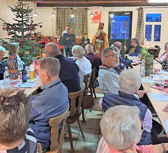 Zwei junge Nachwuchsmusiker David und Julian Jungbluth am Keyboard und Trompete begrüßten mit Weihnachtsliedern und dem Nikolauslied den heiligen Mann. Dieser war extra aus Bad Hönningen angereist und hatte für die über 80jährigen Mitglieder und deren Begleitung ein kleines Dankeschön im Gepäck. Bei weiterer musikalischer Begleitung verging die Zeit schnell bis zum gemeinsamen Abendessen und der obligatorischen Weihnachtstombola, wo jedes Mitglied noch einen schönen Preis mit heim nehmen konnte. Zu fortgeschrittener Stunde verabschiedete Bodo Michel mit den besten Weihnachtswünschen und einem "guten Rutsch" ins neue Jahr, die vielen Mitglieder und Gäste.