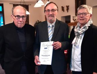 Mit besonderer Freude konnte ihm sein Freund und langjähriger Weggefährte im Kreisverbandsvorstand, Gregor Weiler aus Asbach, die Treuenadel für 50 Jahre Mitgliedschaft im VdK überreichen. In seinem Dankeswort hob Kaiser seine große Freude hervor, die ihm Gregor Weiler mit seinem Besuch gemacht habe, worauf er sehr stolz sei. Auch galt sein Dank seiner Kusine Martina Nothnagel als stellv. Vorsitzende und dem gesamten Vorstand sowie seiner Frau Gabriele, die ihm jederzeit bei seinem ehrenamtlichen Engagement unterstützte.