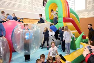 Das 2. Kindersportspielefest in der Bad Hönninger Sprudelhalle, organisiert vom Team Proju (Projekt offene Jugendarbeit), unter der Leitung von Nicole Emmler und finanziell unterstützt von der VG Bad Hönningen, fand auch dieses Mal großen Anklang. Schon bis zum Mittag waren über 70 Kinder der Einladung zur Bewegung, Spiel und Fun gefolgt. Dieser eine Tag sollte die anderen Bedürfnisse der jungen Menschen ansprechen, einfach mal Abwechslung bringen und einen Tag Austoben ermöglichen. Damit alle Kinder das Angebot nutzen konnten, war die Veranstaltung kostenfrei. Hierzu hatten die 18 ehrenamtlichen Helferinnen und Helfer um Nicole Emmler von proju und Ausrichter des Kindersportspielefestes, jede Menge interessante Bewegungsgerätschaften schon am frühen Morgen aufgebaut. So standen den Kids Bubble Bälle, Kletterseile, Riesenschaukel und vieles mehr zur Verfügung, wobei die riesige Hüpfburglandschaft eindeutig das Highlight war. Zudem wurden Tisch Tennis Tische vom TTC Bad Hönningen zur Verfügung gestellt und konnten unter fachlich kompetenter Anleitung einiger Mitglieder und des Vorsitzenden Peter Zwiener genutzt werden. Finanzielle Unterstützung gab es von der Verbandsgemeinde und die Stadt stellte die Nutzung der Sprudelhalle kostenfrei zur Verfügung. Auch gab es neben dem sportlichen und spielerischem Angebot Verpflegung wie Kaffee und Kuchen sowie Softdrinks, die von den Eltern gesponsert wurden. Bürgermeister Jan Ermtraud zeigte sich mehr als positiv, als er die Veranstaltung besuchte. Gleichzeitig lobte er das große ehrenamtliche Engagement und den leckeren Kuchen. „Ich freue mich über die positive Resonanz und das Kinderspielefest muss auf jeden Fall wiederholt werden,“ betonte Ermtraud. Hier schloss sich Nicole Emmler gerne an. „Die Kids warten geradezu darauf, sich bewegen zu können und sind so dankbar für das Angebot, zumal Eltern sich oftmals, bedingt durch die steigenden Preise, Ausflüge in irgendwelche Parks nicht mehr leisten können,“ so Emmler. Erstmals standen für die Pausen Gesellschaftsspiele für die 6 bis 13Jährigen zur Verfügung die auch reichlich genutzt wurden.