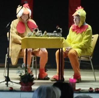 Gisela Linnig und Roswita Wagner mit ihrem Sketch: „2 verrückte Hühner“