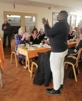 Über den Besuch von Pater Magnus freuten wir uns sehr. Er ließ es sich nicht nehmen, für uns ein nigerianisches Weihnachtslied zu singen. Allen spendete er seinen Segen.