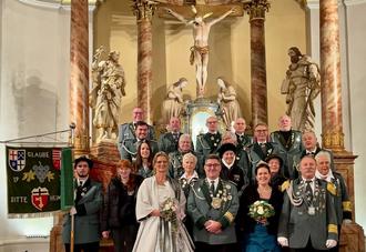 St. Sebastianer Majestäten mit befreundeten Bruderschaften vor dem Altar