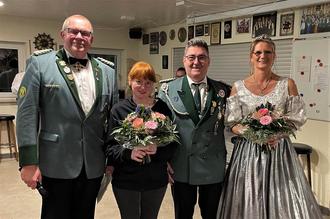 Anschließend ging es dann in die Schützenhalle ins Moorbachtal, wo ein reichhaltiges Buffet auf die Mitglieder wartete. Das Thekenteam stellte der Tischtennisclub Bad Hönningen, dem an dieser Stelle ein großer Dank gilt. Nach dem schmackhaften Essen begrüßte Brudermeister Uwe Walkenbach die Ehrengäste Pastor Christian Scheinost und Ehrenbrudermeister Uwe Scheid. Die amtierenden Majestäten der Bruderschaft bat er kurz nach vorne darunter Jugend- und Vogelprinzessin Lea Rosenstein, sowie das Scheiben-, Vogel- und Bezirkskönigspaar Peter und Manuela Vogel. Walkenbach sprach allen seinen Dank aus, dass sie den Verein so großartig repräsentiert hatten.