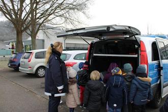 Das Highlight war natürlich die Besichtigung des Polizeibusses und hier ganz besonders das Blaulicht und die Sirene.