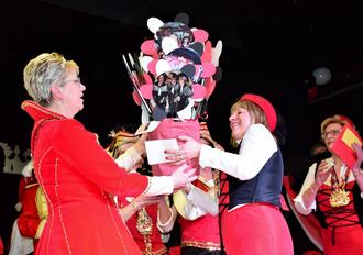Nach nunmehr zwei Jahren coronabedingter Pause startete die Sitzung des Damenkomitees mal etwas anders als gewohnt! Wegen der langen Enthaltsamkeit in Sachen „jeckig sein“ kam Kerstin Sprenger total verschnupft auf die Bühne und jammerte dem Publikum klagend vor, dass sie nicht live die Möhnensitzung sehen dürfe und wieder nur digital dabei sein könne. Was sich dann Gott sei Dank als geistiger Irrtum ihrerseits entpuppte, denn die närrischen Damen vom Damenkomitee Mokkakännchen zogen mit großem Hallo in den Saal des Gemeindezentrums ein, der wie immer in den Vereinsfarben „Rot-Schwarz“ festlich herausgeputzt war. Während sie vom Publikum mit donnerndem Applaus empfangen wurden, eroberten die Damen ratzfatz die Bretter, die die Welt bedeuteten. Und eins schonmal vorneweg - von karnevalistischen Entzug keine Spur. Schließlich durfte endlich wieder nach allen Regeln der Kunst gefeiert werden, zumal die Präsidentin des Damenkomitees das närrische Zepter als Hünnijer Prinzessin Diana I. schwang und mit ihrem Team auf allen Bühnen unterwegs war. Unter dem Motto: „Mir sin Prinzessin“ führten Elke Schüller und Claudia Wagner durch das bunte Programm des Abends. Gleich nach der Begrüßung gab es schon die erste Ehrung für Lilo Schön, die für 50 Jahre aktive Möhnen-Mitgliedschaft gefeiert werden konnte. Sie ist somit die Dienstälteste Möhne des Vereins. Dann ging es auch schon Schlag auf Schlag los und die Kinderprinzessinnen Jolie I. und Romy I. marschierten mit ihren Zuckerpuppen fröhlich ein, gefolgt von ihren Tanzgruppen, die mit ihren schwungvollen Tanzeinlagen begeisterten. Im Anschluss konnten die Gäste miterleben, was man so alles im Kino erleben konnte. Uli Fingerhuth, Steffi Hessler, Sabine Sartor, Martina Hönig, Silvia Biedermann und Ilke Müller lieferten hierzu eine herrliche Parodie ab. Dem schloss sich eine weitere Ehrung an, Sabine Sartor und Uli Franke-Fingerhuth konnten für 40 Jahre Mitgliedschaft ausgezeichnet werden. „Oma Finchen“, Claudia Stolte - Herdler, berichtete wortreich über einige Anekdoten aus ihrem Leben. Nach dem fulminanten Einmarsch der ALTEN GARDE „Blau - Weiß“, mit Pauken, Trompeten, Tanzmariechen und ihrem Kommandanten Michael Schwarz, war die Stimmung im Saal mehr als perfekt! Für einen weiteren Höhepunkt sorgen dann Ilke Müller und Sabrina Wilsberg in: „Die Verwechslung“. Sie zeigten auf, wie dramatisch ein Gespräch enden konnte, wenn die Telefonverbindung verrücktspielte. Im Anschluss wurde Ilke Müller nachträglich, pandemiebedingt, für 30 Jahre Mitgliedschaft geehrt und zusätzlich mit dem Ehrenorden des Damenkomitees Mokkakännchen ausgezeichnet. Eine Auszeichnung, die nur für außergewöhnliche Leistungen verliehen wird, die sie sich redlich verdient hatte. Des Weiteren konnte Martina Hönig für ihre 35-jährige Mitgliedschaft ihre Ehrung entgegennehmen. Dann sorgte das Pfaffendorfer Männerballet der KFK Schälsjer e.V. - Stramme Jungs in Lederhosen- für Stielaugen bei den Damen im Publikum. Aber auch die Männer sollten nicht zu kurz kommen. Direkt im Anschluss führten die Damen vom Damenkomitee ein musikalisches Gruppenstück auf, in dem sie die Musik der Räuber gekonnt als „Mädels vom Rhing“ in Szene setzten. Vanessa Rosenstein, Corinna Becker, Kerstin Sprenger, Steffi Hessler, Anja Wagner und Martina Hönig lieferten eine großartige Darbietung ab und sorgten für eine super Stimmung, gerade recht für den Höhepunkt des Abends. Emotional gerührt zog die Hönninger Regentin Diana I. mit ihrem Schmözje auf ihre heimische Bühne ein und wurde vom Publikum und dem Moderatorenteam sogleich herzlich in Empfang genommen. Nach einem kurzen Rückblick über ihren karnevalistischen Werdegang folgte eine kleine Überraschung. Zwei Damen mit symbolisierten Autos sangen den Titel: „Im Wagen vor mir fährt ein hübsches Mädchen, es trägt ein rotes Kleid …..“ worauf die närrisch Regentin kurzerhand ihr Gesangstalent unter Beweis stellte und den sängerischen Part des Duos übernahm. Zur Belohnung überreichte Elke Schüller, die übrigens für 40 Jahre im Verein geehrt wurde, dann einen gebastelten Blumenstrauß gespickt mit karnevalistischen Erinnerungen. Auch im Prinzessinnen-Team gab es einige Jubiläen nachzufeiern. Diana I. wurde für 30 Jahre geehrt und Martina Nothnagel für 45 Jahre sowie Moderatorin Claudia Wagner für ihre 25 Jahre Mitgliedschaft. Nun kam die närrische Regentin zum Zuge und verteilte ihre, speziell gefertigten Ehrenanstecker, die an diese Session erinnern sollten, an die Damen des Damenkomitees. Um den ganzen Empfang abzurunden, sang sie mit ihrem Team natürlich noch ihr Sessionslied und die Garden gaben ihre Tänze zum Besten. Anschließend mischte sich die Regentin unters Volk und lauschte den nächsten Vorträgen. Bevor ein grandioses Finale der Sitzung einen exzellenten Schlusspunkt verlieh, sorgten noch weitere Vorträge und zackige Gardetänze für Furore. Außerdem hielten die Möhnen abschießend etwas Besonderes für ihre Fans bereit, indem sie aufzeichneten das der Karneval sich im Vergleich zu früher verändert habe, denn eine Prinzessin als Regentin wäre noch vor einigen Jahren undenkbar gewesen. Dann sammelten sich alle um ihre „Prinzessin“ und sangen gemeinsam „Dat is Hünnijer Karneval“ gepaart mit einem tosenden Beifall ans Damenkomitee Mokkakännchen für ihr unterhaltsames Programm und eine spitzenmäßige Sitzung!