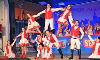 Reichlich geschunkelt wurde auf das Lied "Dat is Hünnijer Karneval" vorgetragen vom Ehrenpräsident Konrad Hecken. Und plötzlich war er da, der Protokollarius, der den ganzen Weg zu Fuß hatte "gehen" müssen. Nach dem Blick auf das politische und mediale Weltgeschehen nahm er die lokalen Ereignisse aufs Korn. "Um wat ze finden, ihr vermutet es wohl, gucken mer mol zuallererst nach Rheinbrohl!", löste Feltens damit einen brüllenden Lacher aus. "Es pfeift von den Dächern ein jeder Spatz: Rheinbrohl behält doch seinen Römerplatz! Dass einer mit Parteibuch un Geld schon fast alles kann, das machte die Rheinbrohler janz schön sauer, Mann oh Mann." Angesichtes des Umzugs von "Labondese Jünther" nach Hünnije müsse der Name der Musikgruppe "Drei Nejer un en Bunn" in "en ruude, en jebleichte un zwei schwarze Bunne" umgetauft werden, stellte Feltens eine neue These auf. Er schlug eine Kapriole nach der anderen und hatte die Närrinnen und Narren auf seiner Seite. Auch die Rheinbrohler im Publikum nahmen die Spitzen nicht krumm, sondern belohnten die Attacken auf die Lachmuskeln mit viel Applaus. Natürlich präsentierten sich die Tanzgarde, Funken sowie Prinzengarde von der zackigen Seite.